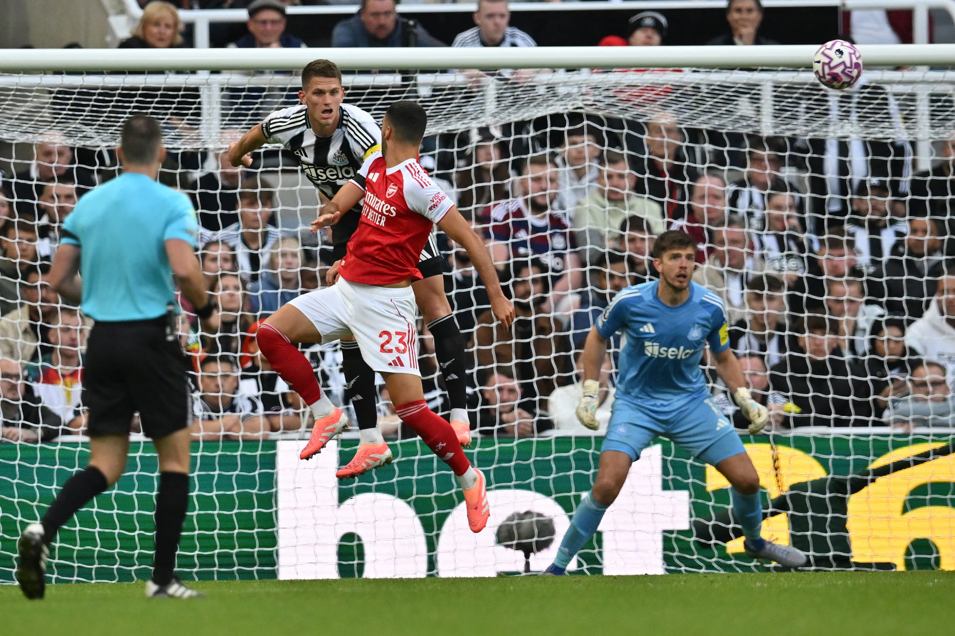Lini belakang Newcastle yang telah dirombak total jelas tak mampu menjawab ketika Arsenal memainkan skema tendangan sudut pendek mereka sendiri dan Declan Rice melepaskan umpan silang ke arah Merino yang, setelah menghindari Sven Botman, menyundul bola dengan keras melewati Pope. Meskipun Howe menuntut penalti ketika umpan silang Anthony Elanga mengenai lengan Gabriel, tinjauan VAR menyimpulkan sebaliknya dan tekanan tampaknya, hampir tak terelakkan, berpihak pada Arsenal.